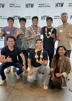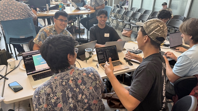 A team of University of Hawaiʻi at Mānoa Department of Information and Computer Sciences (ICS) students and alumni captured first place at the Vibe Coding Hackathon during Honolulu Tech Week on September 13 at the Entrepreneurs Sandbox. The four-member team of Kai Garcia (team leader), Aris Carlos, Sage Suzuki and Lenox Covington won the $3,000 top prize for building a website for Honolulu Tech Week organizers that made it easier for them to plan and manage events.